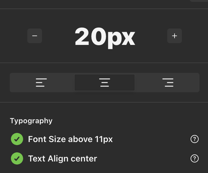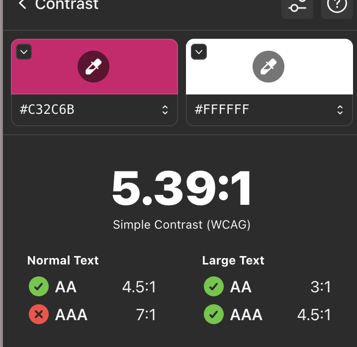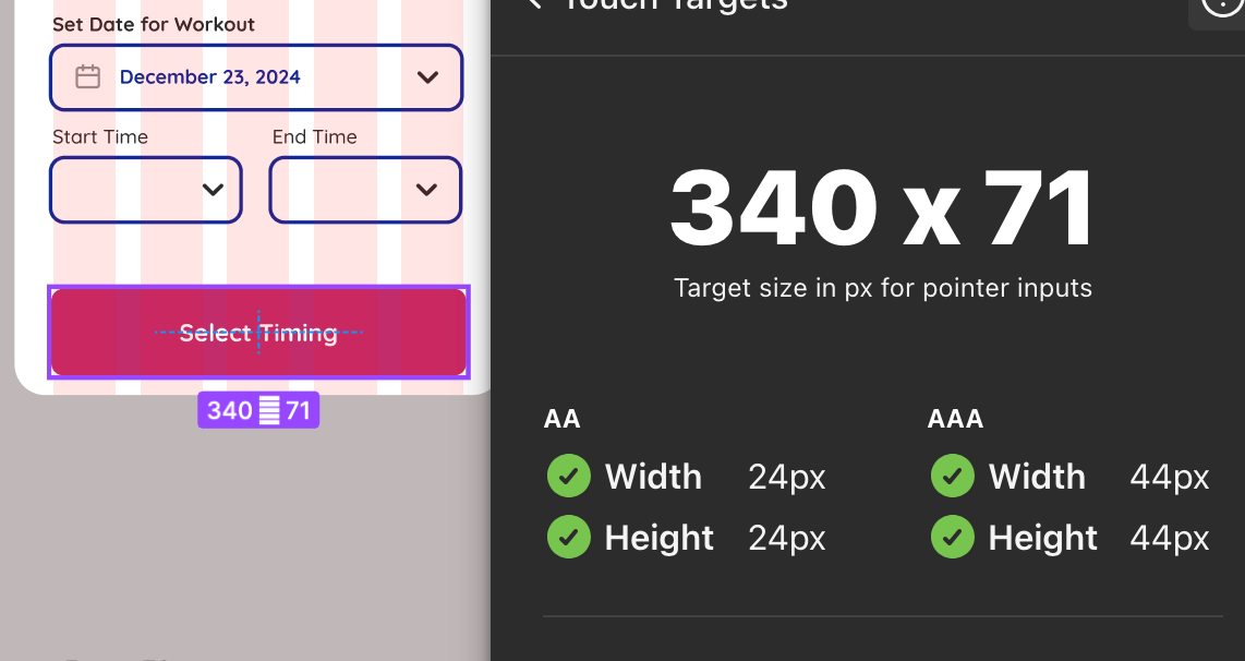 Accessibility Testing: To confirm the accessibility of our buttons, colours, and text sizes, we used the Stark tool to determine if our UI meets AA standards.